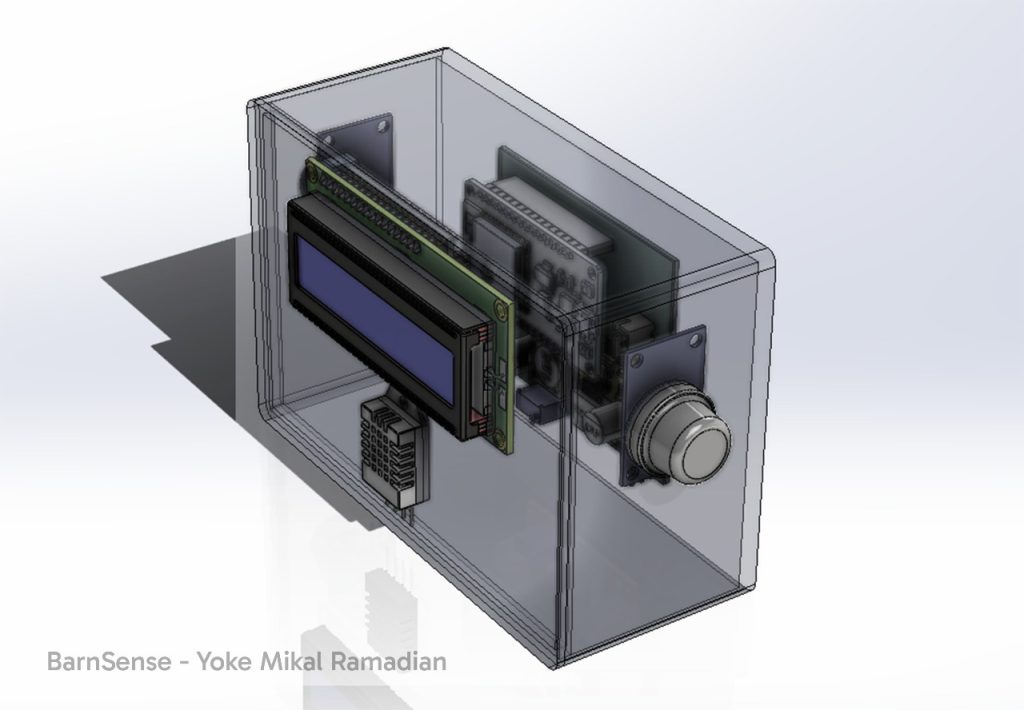 Alat ini bekerja dengan sensor yang mengukur kondisi udara di sekitar kandang, kemudian menampilkan hasilnya pada layar digital. Tidak memerlukan koneksi internet atau platform daring, BarnSense dirancang agar mudah digunakan oleh peternak di daerah yang belum memiliki akses internet stabil.