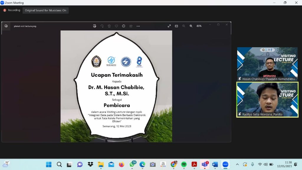 The second visiting lecture in the framework of the 8th Lustrum of the Department of Electrical Engineering was held on 12 May 2023 which was attended by approximately 100 participants. The seminar presented the Head of the Center for Data and Information Technology of the Ministry of Education and Culture, Dr. M. Hassan Chabibie, S.T., M.SI. who presented material entitled “Data Integration in Electronic-Based Systems for Efficient Governance”.