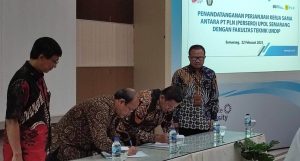 On February 22, 2023 a cooperation agreement was signed between the Education and Training Unit (UPDL) of PT PLN (Persero) which oversees 3 academies, namely the academy of transmission line and life working, innovation and research, health safety, security and environment. The signing was carried out by Prof. Ir. M. Agung Wibowo, MM, MSc, PhD. (Dean of FT) and PT PLN Semarang UPDL Manager, Helfberd Tampubolon. It was also witnessed by the Head of the Electrical Engineering Department, namely Aghus Sofwan, S.T., M.T., Ph.D. and Head of S1 and S2 Study Programs, namely Munawar Agus Riyadi, S.T., M.T., Ph.D. and Mochammad Facta, S.T., M.T., Ph.D and Budi Aprianda (Pusdiklat PLN). In addition, the signing was also attended by the coordinator of the electrical engineering laboratory.