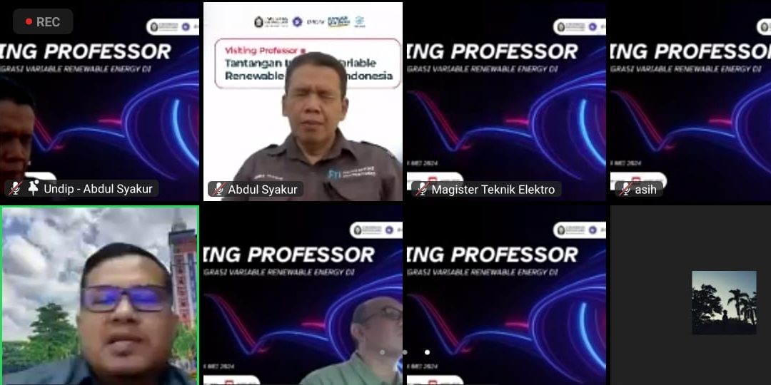 Semarang, May 14, 2024 – The Electrical Student Association (HME) of the Faculty of Electrical Engineering, Diponegoro University (Undip) held another Visiting Professor event with the theme “Challenges of Variable Renewable Energy Integration in Indonesia”. This event was held online through the Zoom Meeting platform, presenting Prof. Ir. Hadi Suyono, ST, MT, PhD as the main speaker. Prof. Hadi Suyono is a Professor in the field of Power System Engineering and Artificial Intelligence from the Department of Electrical Engineering, Faculty of Engineering, Universitas Brawijaya. The discussion was moderated by Dr. Ir. Abdul Syakur, S.T., M.T., IPU.