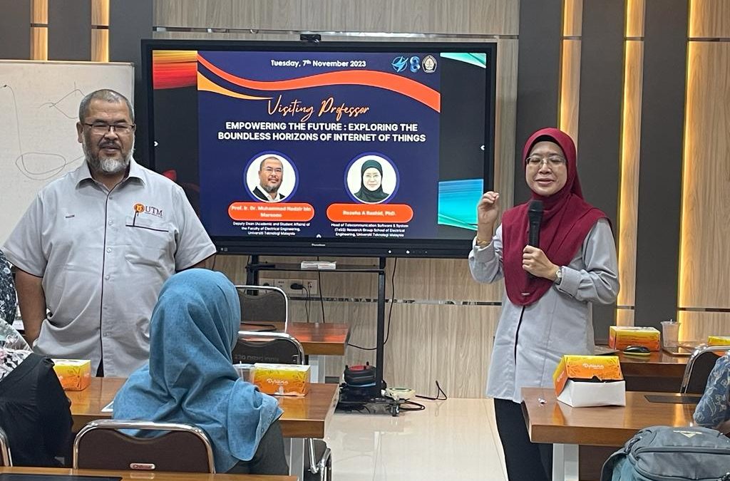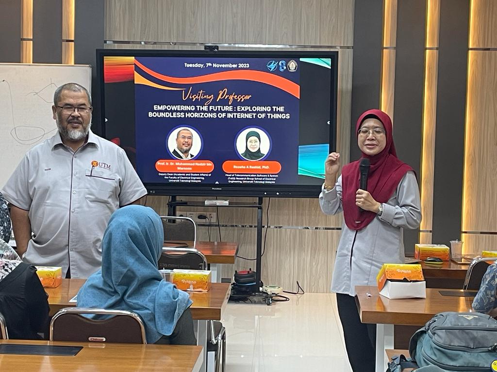 Visiting Professor with the theme Empowering The Future: Exploring The Boundless Horizons of Internet of Things was held on November 8, 2023. With speakers Prof. Ir. Dr. Muhammad Nadzir bin Marsono and Rozega A Rashid, PhD. With moderator 1 Teguh Prakoso, PhD and moderator 2 Munawar AR, PhD.