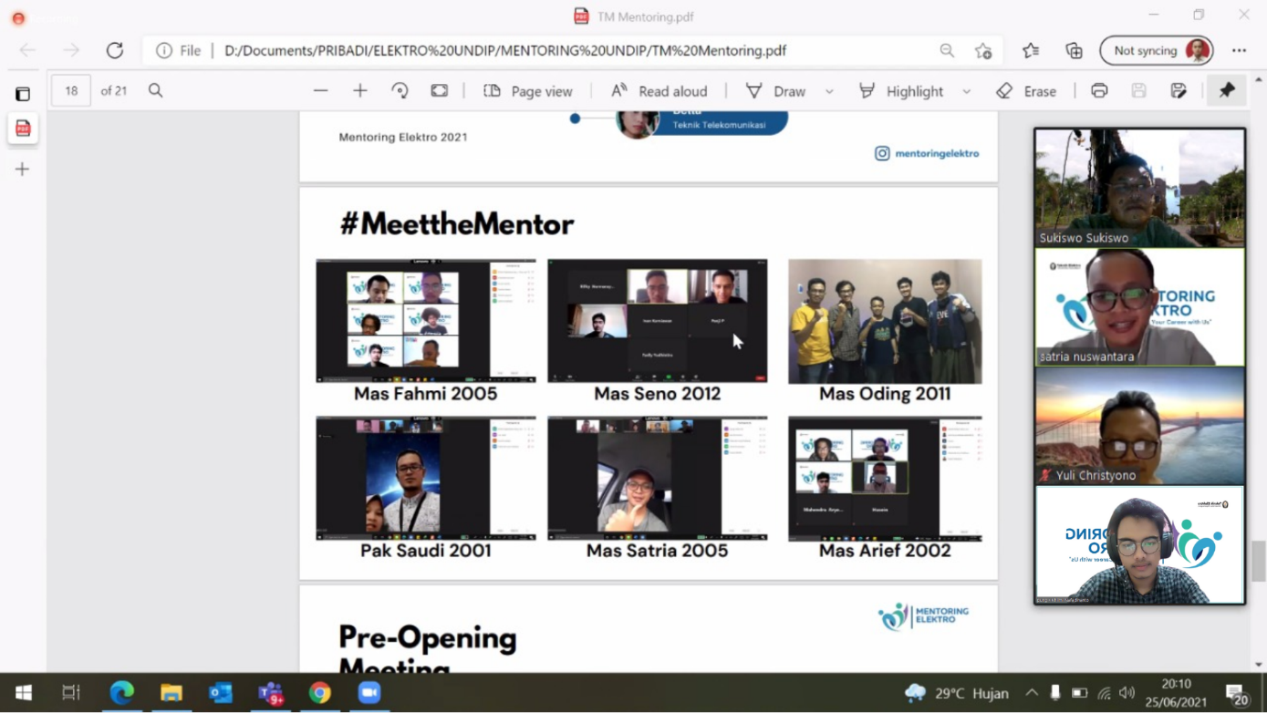 Semarang, (25/6/2021) Alumni, Mahasiswa, bersama dengan Pengurus Departemen Teknik Elektro Universitas Diponegoro telah melaksanakan audiensi dan pemaparan konsep terkait kegiatan Career Mentoring dari hasil kolaborasi antara Mahasiswa dengan Alumni.