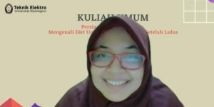Pada hari Selasa tanggal 17 Mei 2022, Departemen Teknik Elektro Universitas Diponegoro mengadakan Kuliah Umum dengan tema “Persiapan Pasca Kampus: Mengenali Diri Untuk Penguatan Karir Setelah Lulus”. Kegiatan ini secara khusus ditujukan untuk seluruh mahasiswa aktif di Departemen Teknik Elektro Universitas Diponegoro guna mendapat pandangan dan pematangan mengenai karir dan tahap lanjut yang akan dipilih setelah lulus. Kegiatan Kuliah Umum 2022 ini berlangsung secara daring melalui Zoom Meeting dari pukul 08.00 hingga 11.30 dengan penyampaian materi oleh oleh Bapak Mohammad Kamiluddin, S.T., M.Sc. (LPDP) dan Ibu Novika Grasiaswaty, S.Psi., M.Si (P). Acara sukses terlaksana dengan banyaknya peserta yang antusias untuk bertanya dan berdiskusi secara interaktif dengan narasumber. Selain itu diadakan juga simulasi yang diberikan kepada para peserta untuk mengenali potensi dan minat karir. Kedepannya diharapkan dengan adanya kuliah umum ini seluruh peserta bisa mendapat manfaat, mengenali minat dan potensi diri, termotivasi untuk mempersiapkan karir sedini mungkin, serta mengakselerasi pencapaian diri.