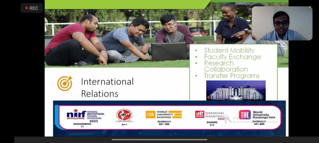 Semarang, 31 Mei 2024 – Senior Assistant Professor sekaligus Koordinator Hubungan Internasional TIFAC-CORE Research Centre Department of Energy and Power, Vellore Institute of Technology, Dr. Santanu Kumar Dash, PhD, menyampaikan materi dalam acara Visiting Professor yang diselenggarakan secara daring.